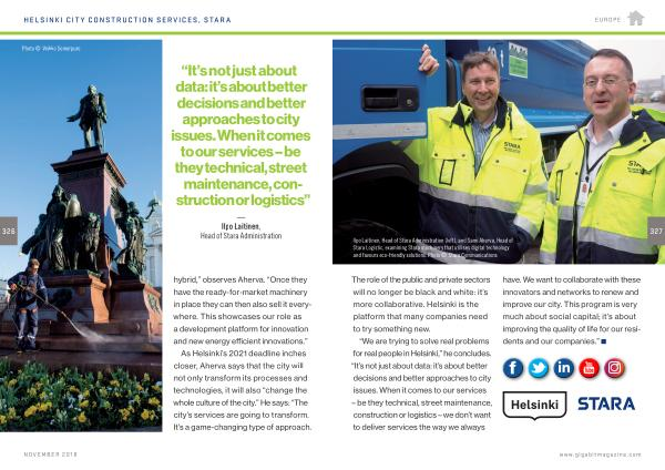 “ We are trying to solve real problems for real people in Helsinki ,” he concludes . “ It ’ s not just about data : it ’ s about better decisions and better approaches to city issues . When it comes to our services – be they technical , street maintenance , construction or logistics – we don ’ t want to deliver services the way we always have . We want to collaborate with these innovators and networks to renew and improve our city . This program is very much about social capital ; it ’ s about improving the quality of life for our residents and our companies .”