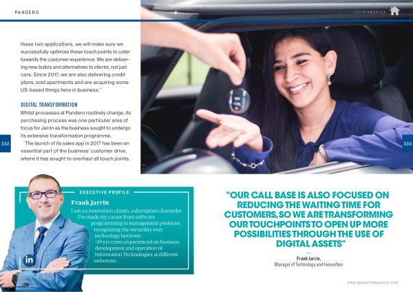 these two applications , we will make sure we successfully optimise these touch points to cater towards the customer experience . We are delivering new builds and alternatives to clients , not just cars . Since 2017 , we are also delivering credit plans , sold apartments and are acquiring some US-based things here in business .”