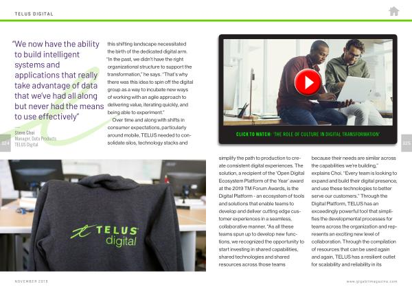 CLICK TO WATCH : ‘ THE ROLE OF CULTURE IN DIGITAL TRANSFORMATION ’ 325 simplify the path to production to create consistent digital experiences . The solution , a recipient of the ‘ Open Digital Ecosystem Platform of the Year ’ award at the 2019 TM Forum Awards , is the Digital Platform - an ecosystem of tools and solutions that enable teams to develop and deliver cutting edge customer experiences in a seamless , collaborative manner . “ As all these teams spun up to develop new functions , we recognized the opportunity to start investing in shared capabilities , shared technologies and shared resources across those teams
