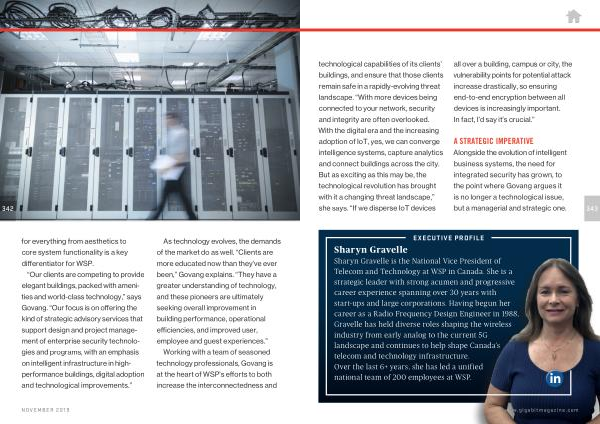 “ Our clients are competing to provide elegant buildings , packed with amenities and world-class technology ,” says Govang . “ Our focus is on offering the kind of strategic advisory services that support design and project management of enterprise security technologies and programs , with an emphasis on intelligent infrastructure in highperformance buildings , digital adoption and technological improvements .”