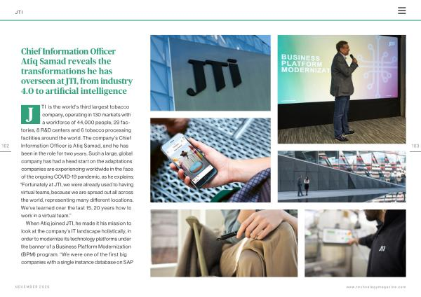 Chief Information Officer Atiq Samad reveals the transformations he has overseen at JTI , from industry 4.0 to artificial intelligence