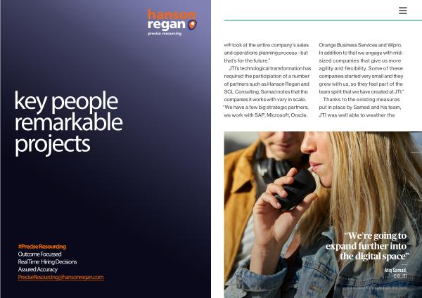 JTI ’ s technological transformation has required the participation of a number of partners such as Hanson Regan and SCL Consulting . Samad notes that the companies it works with vary in scale . “ We have a few big strategic partners , we work with SAP , Microsoft , Oracle ,
