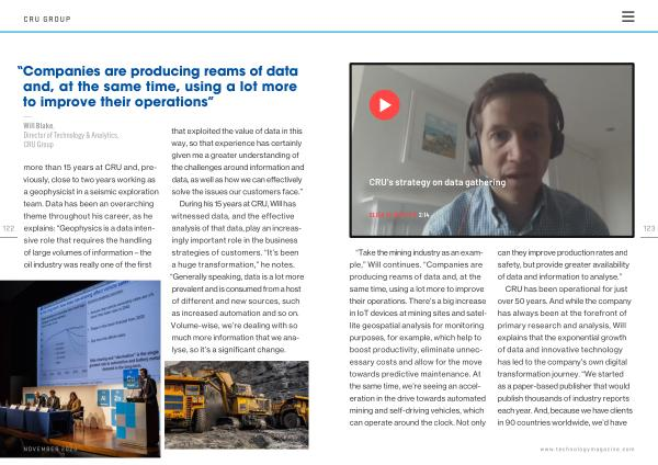 CRU has been operational for just over 50 years . And while the company has always been at the forefront of primary research and analysis , Will explains that the exponential growth of data and innovative technology has led to the company ’ s own digital transformation journey . “ We started as a paper-based publisher that would publish thousands of industry reports each year . And , because we have clients in 90 countries worldwide , we ’ d have