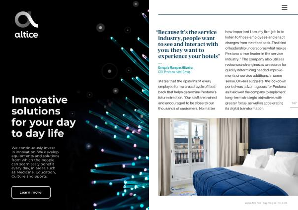 states that the opinions of every employee form a crucial cycle of feedback that helps determine Pestana ’ s future direction . “ Our staff are trained and encouraged to be close to our thousands of customers . No matter how important I am , my first job is to listen to those employees and enact changes from their feedback . That kind of leadership underscores what makes Pestana a true leader in the service industry .” The company also utilises review search engines as a resource for quickly determining needed improvements or service additions . In some sense , Oliveira suggests , the lockdown period was advantageous for Pestana as it allowed the company to implement long-term strategic objectives with greater focus , as well as accelerating its digital transformation .