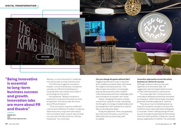 Innovative approaches across the whole business as a driver for success Although cautious of the success and significance of innovation labs , Hill suggested it was the theatre behind some of them that has bred this cautiousness .