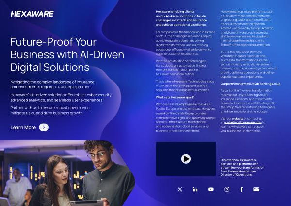 Hexaware is helping clients unlock AI-driven solutions to tackle challenges in FinTech and Insurance and achieve operational excellence .
