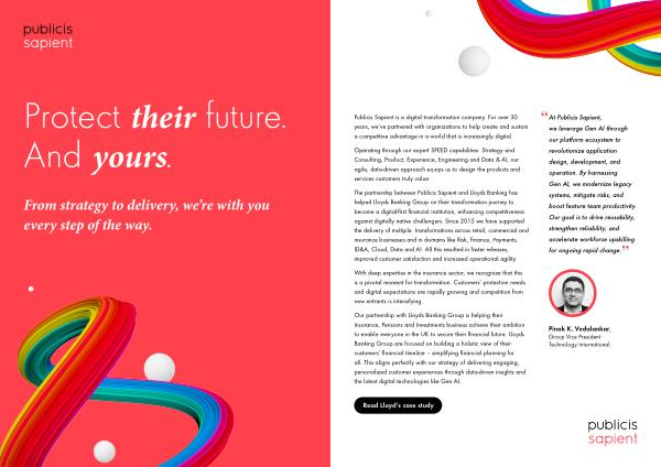 Our partnership with Lloyds Banking Group is helping their Insurance , Pensions and Investments business achieve their ambition to enable everyone in the UK to secure their financial future . Lloyds Banking Group are focused on building a holistic view of their customers ’ financial timeline – simplifying financial planning for all . This aligns perfectly with our strategy of delivering engaging , personalized customer experiences through data-driven insights and the latest digital technologies like Gen AI .