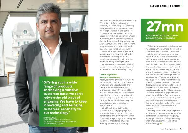 “ Offering such a wide range of products and having a massive customer base , we can ’ t rely on the old ways of engaging ,” Amit says . “ We have to keep innovating and bringing customer-centricity to our technology .” technologymagazine . com 157