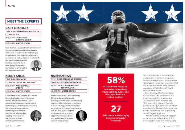 Norman Rice is the Chief Operating Officer at Extreme Networks , a leading provider of cloud networking solutions . With extensive experience in the technology sector , Rice plays a crucial role in Extreme ’ s partnership with the NFL , overseeing the implementation of cuttingedge networking solutions that power next-generation stadium experiences .