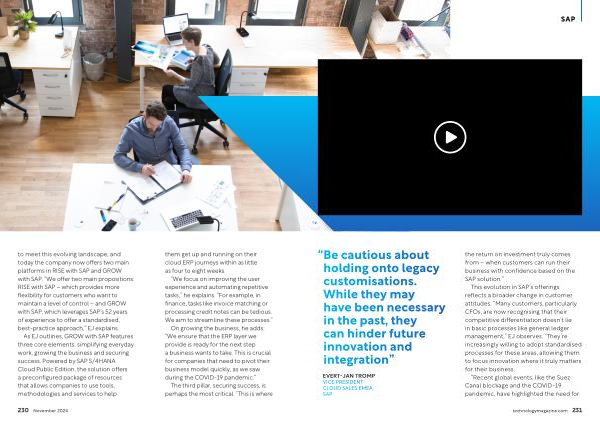 to meet this evolving landscape , and today the company now offers two main platforms in RISE with SAP and GROW with SAP . “ We offer two main propositions : RISE with SAP – which provides more flexibility for customers who want to maintain a level of control – and GROW with SAP , which leverages SAP ’ s 52 years of experience to offer a standardised , best-practice approach ,” EJ explains .
