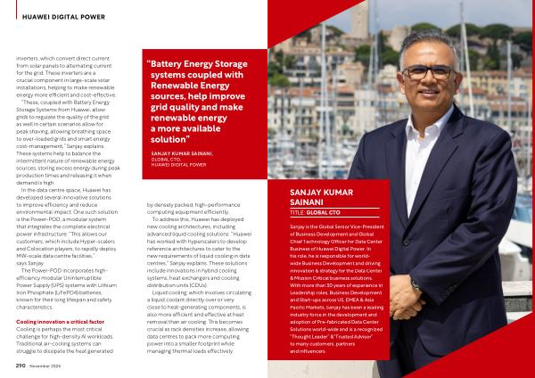 Sanjay is the Global Senior Vice-President of Business Development and Global Chief Technology Officer for Data Center Business of Huawei Digital Power . In his role , he is responsible for worldwide Business Development and driving innovation & strategy for the Data Center & Mission Critical business solutions . With more than 30 years of experience in Leadership roles , Business Development and Start-ups across US , EMEA & Asia Pacific Markets , Sanjay has been a leading industry force in the development and adoption of Pre-fabricated Data Center Solutions world-wide and is a recognized “ Thought Leader ” &“ Trusted Advisor ” to many customers , partners and influencers .