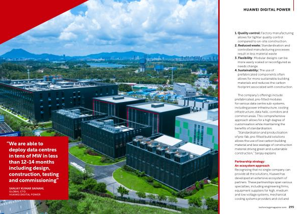 Partnership strategy : An ecosystem approach Recognising that no single company can provide all the solutions , Huawei has developed an extensive ecosystem of partners . These partnerships span various specialties , including engineering firms , equipment suppliers for high , medium and low voltage systems , mechanical cooling systems providers and civil and