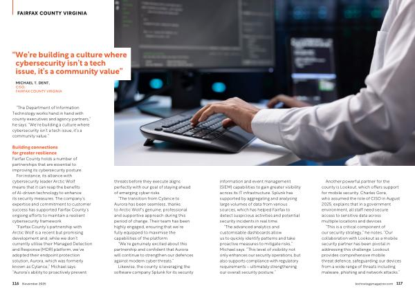 “ Fairfax County’ s partnership with Arctic Wolf is a recent but promising development and, while we don’ t currently utilise their Managed Detection and Response( MDR) platform, we’ ve adopted their endpoint protection solution, Aurora, which was formerly known as Cylance,” Michael says.“ Aurora’ s ability to proactively prevent threats before they execute aligns perfectly with our goal of staying ahead of emerging cyber risks.