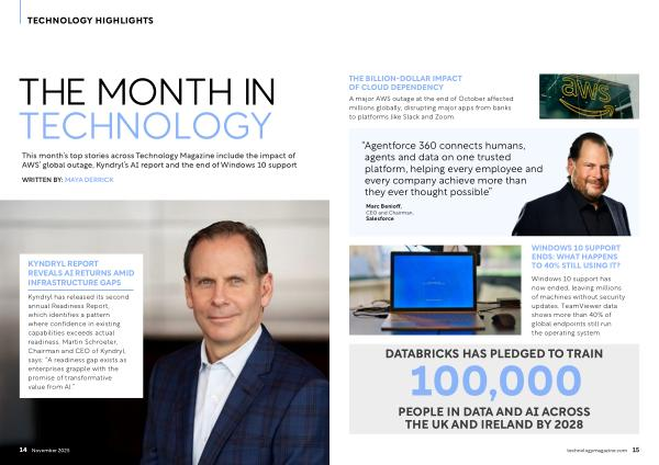 This month’ s top stories across Technology Magazine include the impact of AWS’ global outage, Kyndryl’ s AI report and the end of Windows 10 support