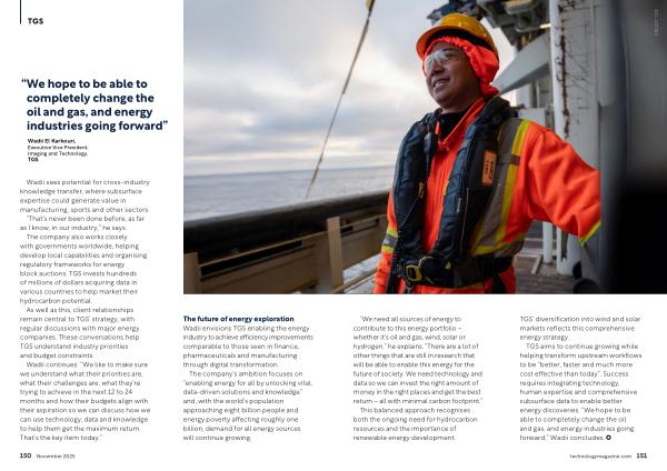 TGS aims to continue growing while helping transform upstream workflows to be“ better, faster and much more cost effective than today”. Success requires integrating technology, human expertise and comprehensive subsurface data to enable better energy discoveries.“ We hope to be able to completely change the oil and gas, and energy industries going forward,” Wadii concludes.