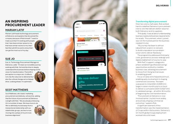 Sue Jo, Technology Procurement Manager at Deliveroo, adds:“ It’ s been an incredible journey working with Rob. He took the time to deeply understand the business before shaping a bold vision for transformation. That shift in perception is a major win. It reflects not only the value we’ ve delivered but also the cultural change we’ ve helped drive. Looking ahead, I’ m optimistic.”