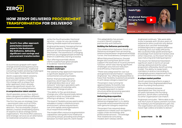 Zero9’ s four-pillar approach parachutes seasoned experts into businesses like Deliveroo, delivering significant cost savings and procurement transformation