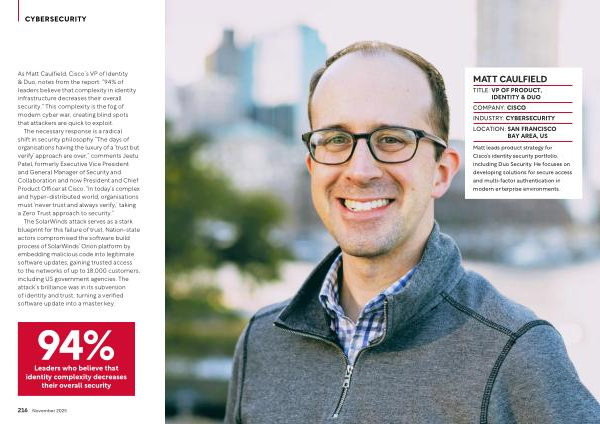 Matt leads product strategy for Cisco’ s identity security portfolio, including Duo Security. He focuses on developing solutions for secure access and multi-factor authentication in modern enterprise environments.