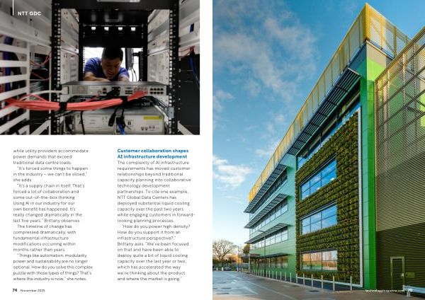 Customer collaboration shapes AI infrastructure development The complexity of AI infrastructure requirements has moved customer relationships beyond traditional capacity planning into collaborative technology development partnerships. To cite one example, NTT Global Data Centers has deployed substantial liquid cooling capacity over the past two years while engaging customers in forwardlooking planning processes.