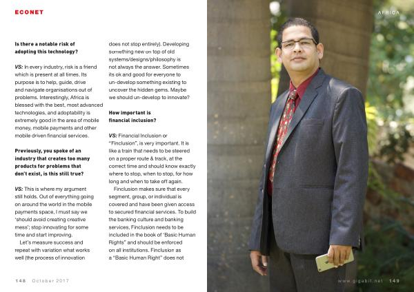 VS : In every industry , risk is a friend which is present at all times . Its purpose is to help , guide , drive and navigate organisations out of problems . Interestingly , Africa is blessed with the best , most advanced technologies , and adoptability is extremely good in the area of mobile money , mobile payments and other mobile driven financial services .