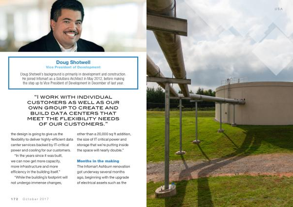 Months in the making The Infomart Ashburn renovation got underway several months ago , beginning with the upgrade of electrical assets such as the