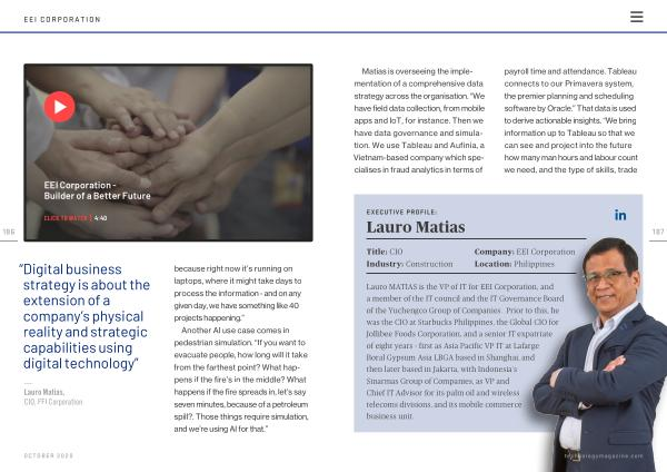 — Lauro Matias , CIO , EEI Corporation because right now it ’ s running on laptops , where it might take days to process the information - and on any given day , we have something like 40 projects happening .”