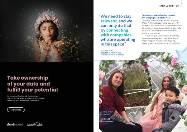 Technology-enabled wishes to meet the changing needs of children To marry its technology with its mission , Make-A-Wish UK applied to be part of JP Morgan ’ s Force for Good programme , which aims to use resources and technology skills to create sustainable solutions for nonprofit organisations .