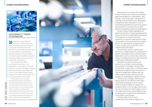 “ We know from our work in the industry that our infrastructure solutions are enabling significant progress on sustainability ,” says Murphy . “ This can be seen in the growth of universal communications and collaboration during the COVID-19 pandemic . A lot of businesses required those services to sustain their business , so we knew that our fibre platform would play a big role in sustainability .”