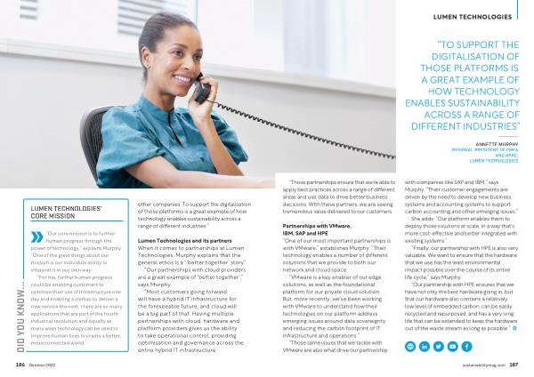 “ VMware is a key enabler of our edge solutions , as well as the foundational platform for our private cloud solution . But , more recently , we ' ve been working with VMware to understand how their technologies on our platform address emerging issues around data sovereignty and reducing the carbon footprint of IT infrastructure and operations .”
