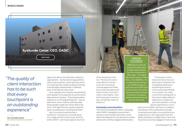DR AYOTUNDE COKER CEO , OPEN ACCESS DATA CENTRES right across Africa , we work with a variety of organisations – be they technology partners , interconnect partners , carrier partners and so on . It ' s going to be a really exciting combining a whole range of partnerships in different parts of the delivery value chain .”