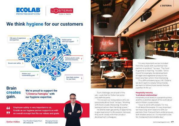 Employee safety is very important to us , Ecolab as our hygiene partner supports us with an overall concept that fits our values and goals .