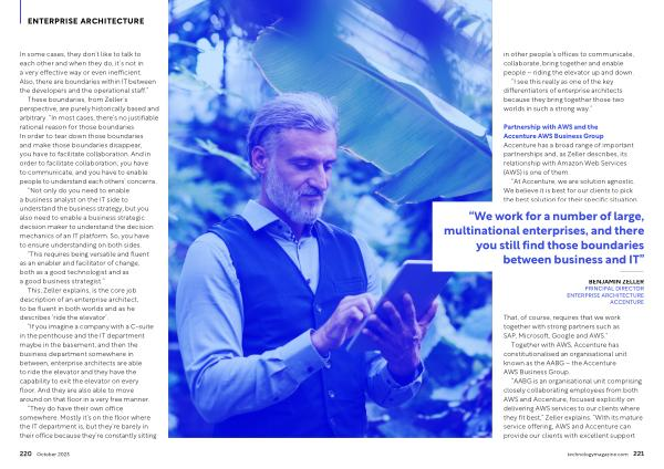 This , Zeller explains , is the core job description of an enterprise architect , to be fluent in both worlds and as he describes ‘ ride the elevator ’.