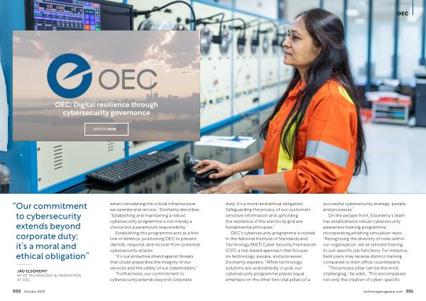 OEC ’ s cybersecurity programme is rooted in the National Institute of Standards and Technology ( NIST ) Cyber Security Framework ( CSF ), a risk-based approach that focuses on technology , people , and processes . Elsohemy explains , “ While technology solutions are undoubtedly crucial , our cybersecurity programme places equal emphasis on the other two vital pillars of a successful cybersecurity strategy : people and processes .”