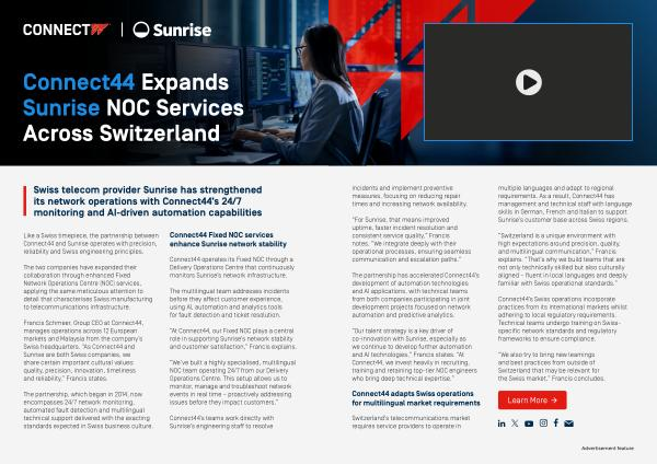 “ Our talent strategy is a key driver of co-innovation with Sunrise, especially as we continue to develop further automation and AI technologies,” Francis states.“ At Connect44, we invest heavily in recruiting, training and retaining top-tier NOC engineers who bring deep technical expertise.”