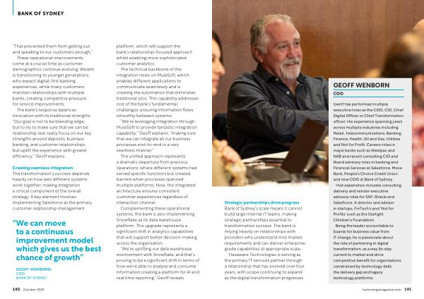 GEOFF WENBORN, COO, BANK OF SYDNEY platform, which will support the bank’ s relationship-focused approach whilst enabling more sophisticated customer analytics.