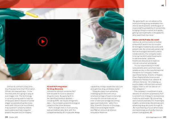 The company’ s investment in and delivery of solutions powered by NLP is central to its strategy to revolutionise medicine and health. By converting vast unstructured data into meaningful insights, accelerating clinical trials and advancing drug discovery through AI, J & J is pioneering a future where data and technology profoundly improve patient lives globally.
