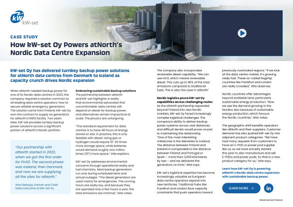 Learn how kW-set Oy is powering atNorth’ s Nordic data centre expansion with sustainable backup power.