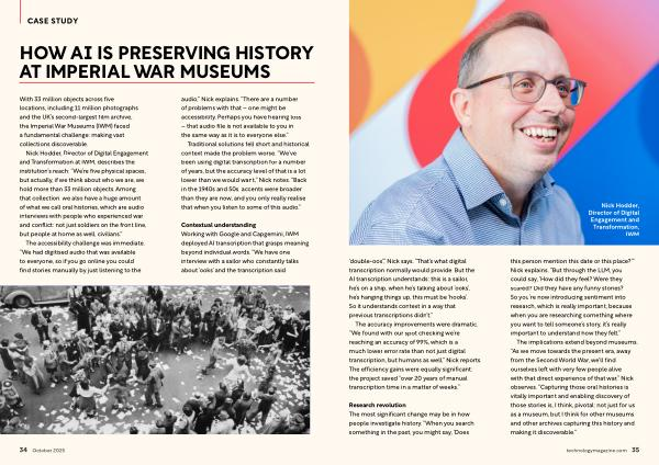 The implications extend beyond museums.“ As we move towards the present era, away from the Second World War, we’ ll find ourselves left with very few people alive with that direct experience of that war,” Nick observes.“ Capturing those oral histories is vitally important and enabling discovery of those stories is, I think, pivotal: not just for us as a museum, but I think for other museums and other archives capturing this history and making it discoverable.”