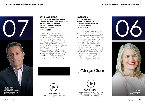 Lori Beer is the Global Chief Information Officer for JPMorgan Chase, managing a technology budget of several billion dollars and a team of tens of thousands. She is responsible for the firm’ s global technology strategy, infrastructure and operations across all business lines, from consumer banking to the corporate and investment bank. Lori is a leader in applying AI, blockchain and cloud computing within the financial sector with a focus on driving innovation to improve customer experiences, strengthen cybersecurity defenses and create more efficient, modern platforms. WATCH NOW