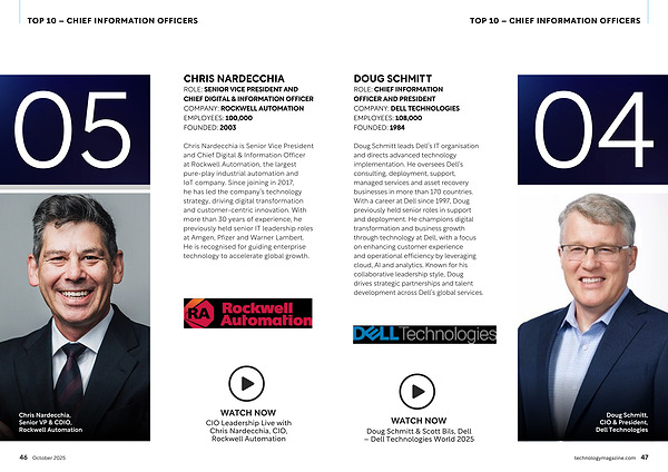 Chris Nardecchia is Senior Vice President and Chief Digital & Information Officer at Rockwell Automation, the largest pure-play industrial automation and IoT company. Since joining in 2017, he has led the company’ s technology strategy, driving digital transformation and customer-centric innovation. With more than 30 years of experience, he previously held senior IT leadership roles at Amgen, Pfizer and Warner Lambert. He is recognised for guiding enterprise technology to accelerate global growth.