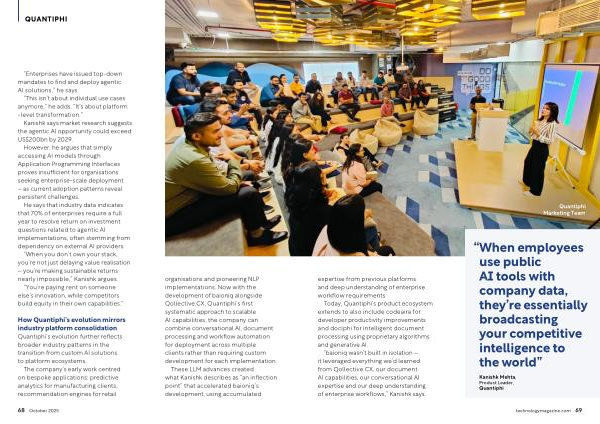 organisations and pioneering NLP implementations. Now with the development of baioniq alongside Qollective. CX, Quantiphi’ s first systematic approach to scalable AI capabilities, the company can combine conversational AI, document processing and workflow automation for deployment across multiple clients rather than requiring custom development for each implementation.