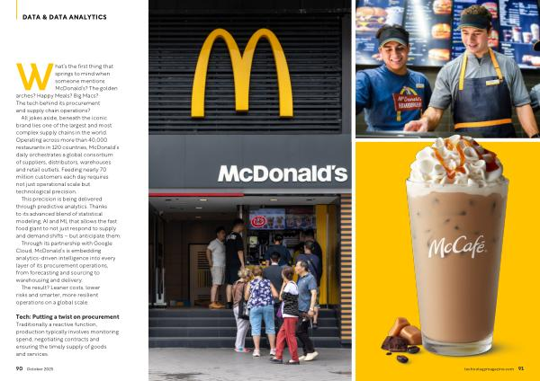 Through its partnership with Google Cloud, McDonald’ s is embedding analytics-driven intelligence into every layer of its procurement operations, from forecasting and sourcing to warehousing and delivery.
