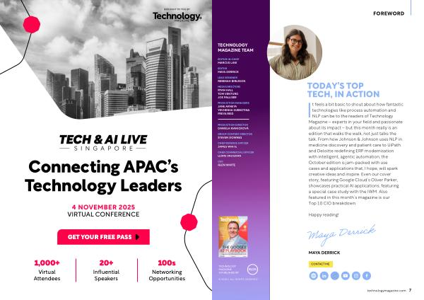 It feels a bit basic to shout about how fantastic technologies like process automation and NLP can be to the readers of Technology Magazine – experts in your field and passionate about its impact – but this month really is an edition that walks the walk, not just talks the talk. From how Johnson & Johnson uses NLP in medicine discovery and patient care to UiPath and Deloitte redefining ERP modernisation with intelligent, agentic automation, the October edition is jam-packed with use cases and applications that, I hope, will spark creative ideas and inspire. Even our cover story, featuring Google Cloud’ s Oliver Parker, showcases practical AI applications, featuring a special case study with the IWM. Also featured in this month’ s magazine is our Top 10 CIO breakdown.