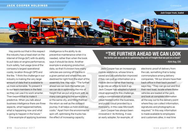 intelligence is the ability to do preventive maintenance when it is needed , rather than when the book says it should be done . Another example is analysing production data , so that it ’ s known how many vehicles are coming off the line in a given period and where they are destined for right from the start of the assembly line . Hay says : “ The further ahead we can look the better job we can do in optimising the mix of freight that we put on a truck with as many cars going to the same place or the same city , and filling them on the return as well as the outward journey . It all helps us hold down our costs .” Apart from the environmental spin-off , optimising the trucks has the effect of increasing capacity .