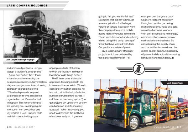 CANADA going to fail , you want to fail fast !” Examples that did not fail include a new application for the large volume of vehicle inspection work the company does and a mobile app to identify vehicles in the field . These were developed and are being trialed using third party ‘ boutique ’ firms that have worked with Jack Cooper for a number of years .