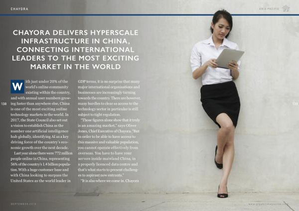 CHAYORA DELIVERS HYPERSCALE INFRASTRUCTURE IN CHINA , CONNECTING INTERNATIONAL LEADERS TO THE MOST EXCITING MARKET IN THE WORLD