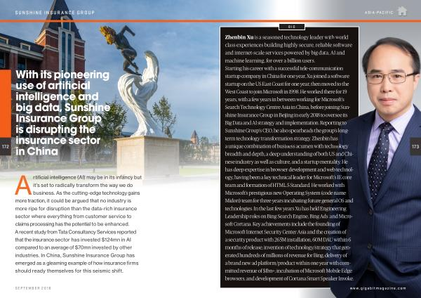 With its pioneering use of artificial intelligence and big data , Sunshine Insurance Group is disrupting the insurance sector in China