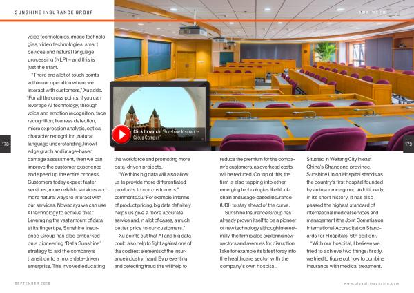 Sunshine Insurance Group has already proven itself to be a pioneer of new technology although interestingly , the firm is also exploring new sectors and avenues for disruption . Take for example its latest foray into the healthcare sector with the company ’ s own hospital .
