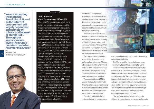TM ’ s transformation journey began in 2013 , overseen by Mohamad ’ s predecessor . Mohamad took over in 2015 and immediately worked across the Group on understanding the already identified gaps in the Company ’ s basic procurement function .
