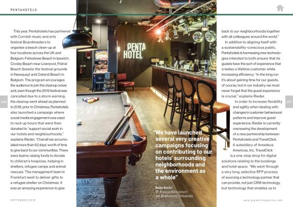 In addition to aligning itself with a sustainability-conscious public , Pentahotels is harnessing new technologies intended to both ensure that its guests have the sort of experience that creates a lifetime customer while increasing efficiency . “ In the long run it ’ s about gaining time for our guests , of course , but in our industry we must never forget that the guest experience is crucial ,” explains Rieder . In order to increase flexibility and agility when dealing with changes in customer behavioural patterns and improve guest experience , Rieder is currently overseeing the development of a new partnership between Pentahotels and TravelClick . A subsidiary of Amadeus Americas , Inc , TravelClick is a one-stop shop for digital solutions relating to the bookings and hotel space . “ We went through a very long , selective RFP process of sourcing a technology partner that can provide , not just CRM technology , but technology that enables us to